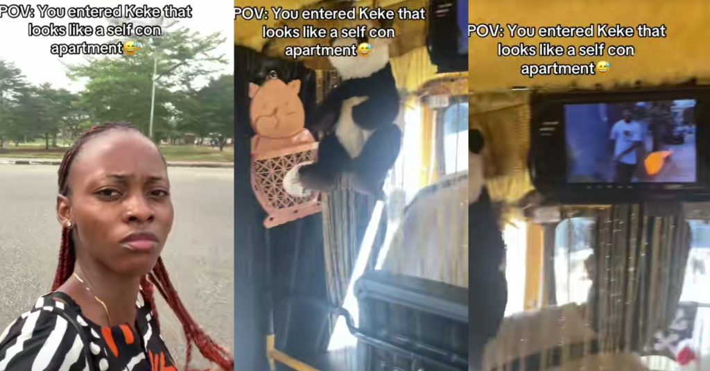 ”POV you entered a Keke that looks like a self com apartment. He charges the same with o the riders depending on where you are going to”, She captioned the video.