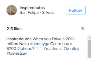 The Nigerian businessman showed off his over 200 million naira Bentley Bentayga as he drove out with it to buy a $700 iPhone 7.