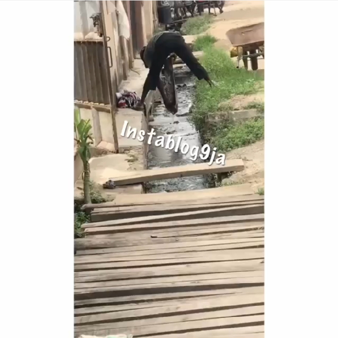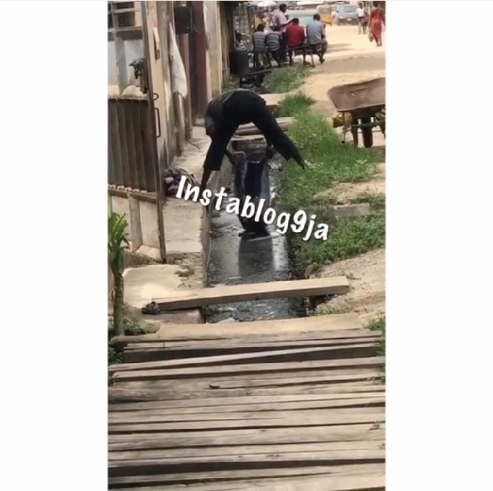 Wheelbarrow Pusher Spotted Washing His Clothes Inside A Gutter In Ketu, Lagos - 9jaflaver