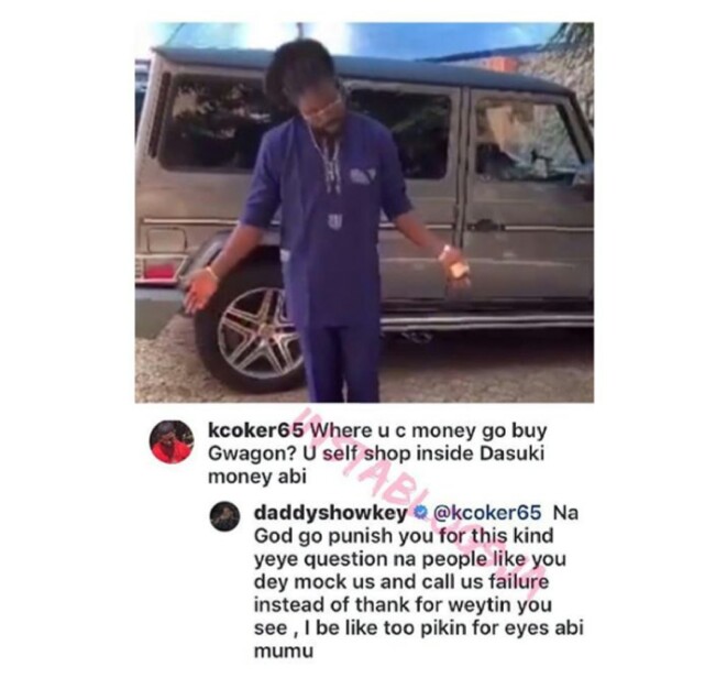 Musician Daddy Showkey firmly places a curse on man who questioned his source of income as he poses with G-Wagon car…