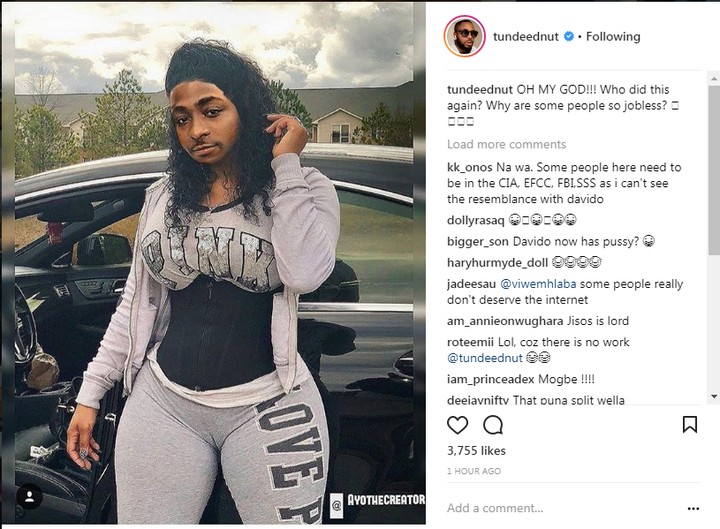 The picture below has been trending on social media, Instagram, Facebook and twitter; with several funny memes being created out of it. Though quite funny, Davido your slay Queen.