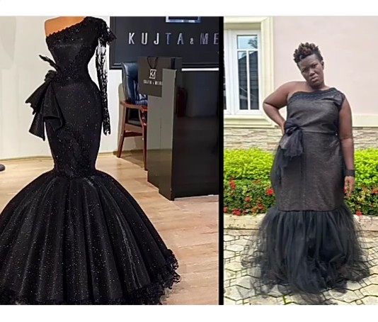 Comedienne, Anita Asuoha, popularly known as Warri Pikin, took to Instagram to show the dress she asked a fashion designer to make for her and what was delivered.