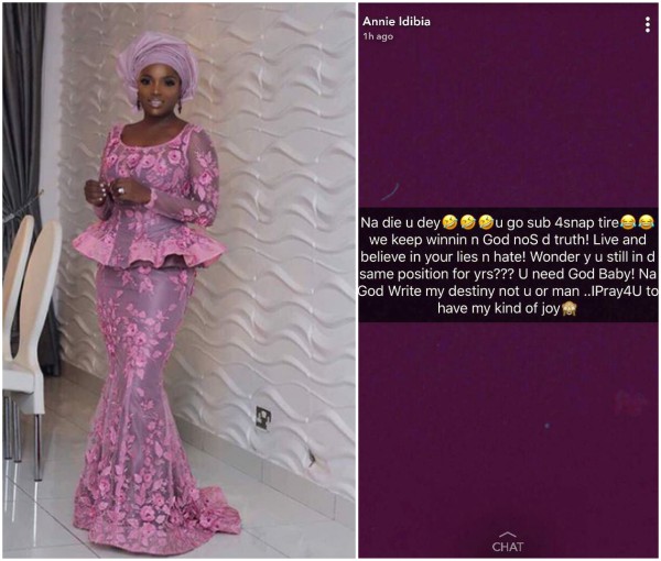 Actress and Tuface Idibia’s wife, Annie Idibia, has replied a yet to be identified social media user and probably a colleague who has been subbing her on social media.