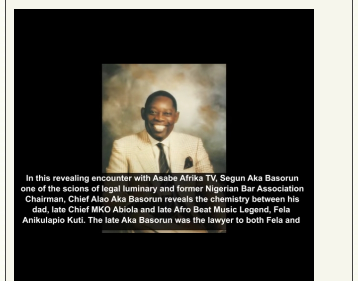 However, son of a late legal luminary Chief Alao Aka Basorun, Segun Aka Basorun has debunked the story that MKO Abiola looted ITT or Nigerian Government. Alao Aka Basorun who is seen as the ‘Godfather of Civil liberty struggle in Nigeria’ was a lawyer to both FELA and MKO Abiola in his life time. Segun Aka Basorun who stumbled on some documents inside his father’s chambers after dad passed away in October 1st, 2005 gave us the full and true details of FELA’s battle with MKO.