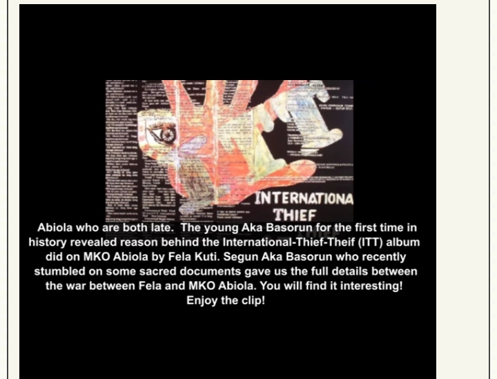 For the very first time in history, the story of the battle between late Afro beat music legend, Fela Anikulapo Kuti and Nigeria’s symbol of democracy late Chief MKO Abiola is revealed. Fela who released the album titled ‘International-Thief-Thief’ in the 80s to chastise the late business mogul over his alleged unwholesome deal with an American Telephony firm, ITT, claiming Abiola defrauded Nigeria of millions of naira over a telephony deal for all homes across Nigeria, which he allegedly refused to install but later pocketed the money.