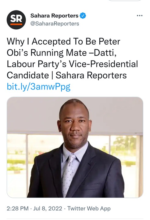 Why I Accepted To Be Peter Obi’s Running Mate – datti