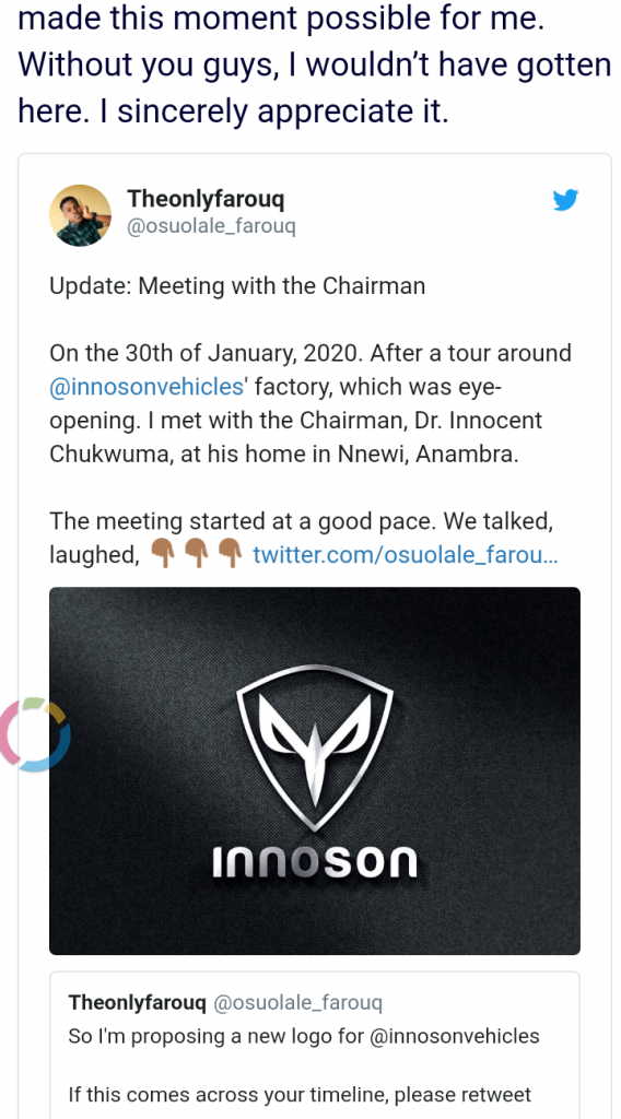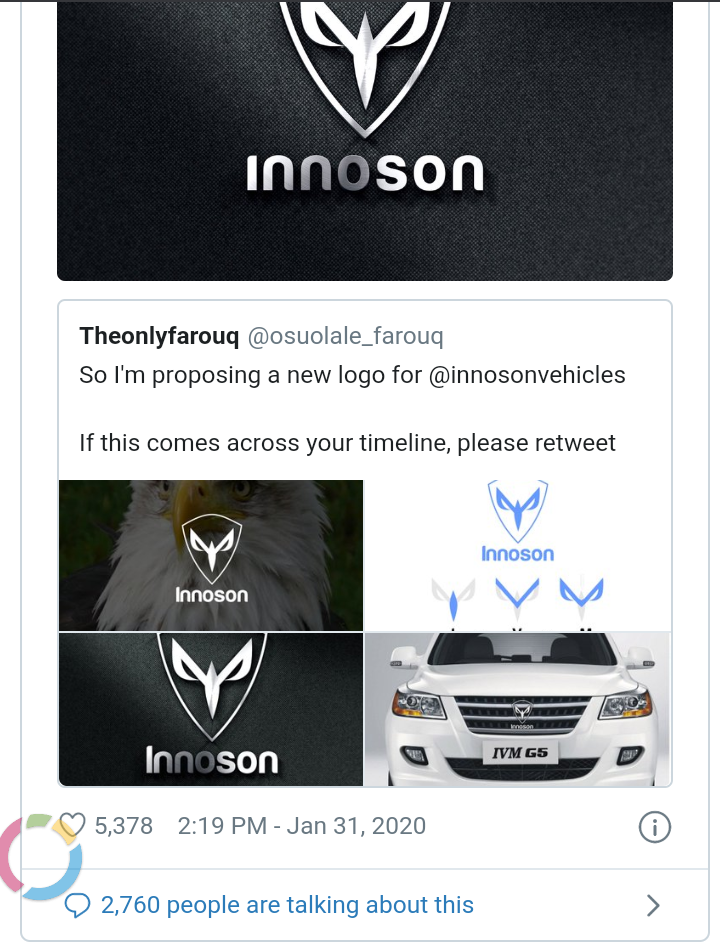 A brand designer, Osuolale Farouq has given an update on Twitter about the new company Logo for the Innoson Group which he designed that got many people talking.