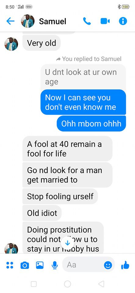 So I sent him a message of how stupid it was for him to call someone on video and not hang up when it was obvious the person wasn’t even there to respond. And next thing Hunku started showering me with insults.
