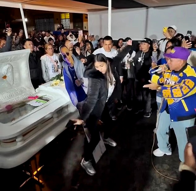 A funeral in Peru took a surprising turn when a widow was filmed twerking against a life-sized cut-out of her late husband leaning against his open coffin.