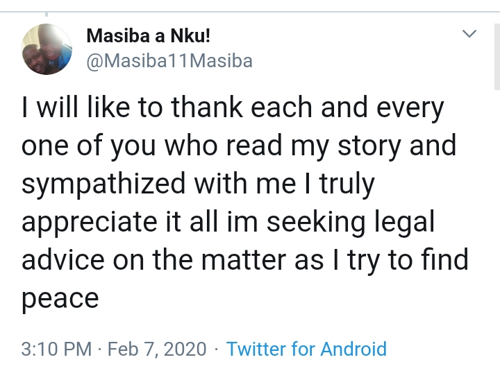 I will like to thank each and every one of you who read my story and sympathized with me I truly appreciate it all im seeking legal advice on the matter as I try to find peace.