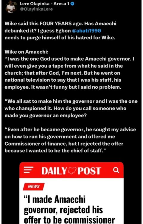 Olayinka further disputed Abati’s claim of Amaechi’s political seniority over Wike.