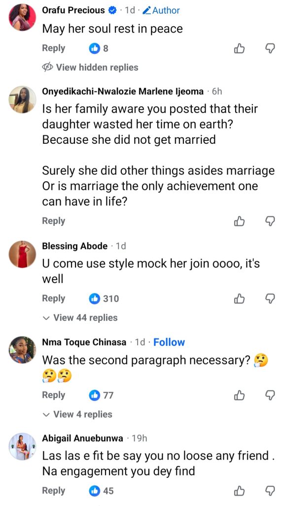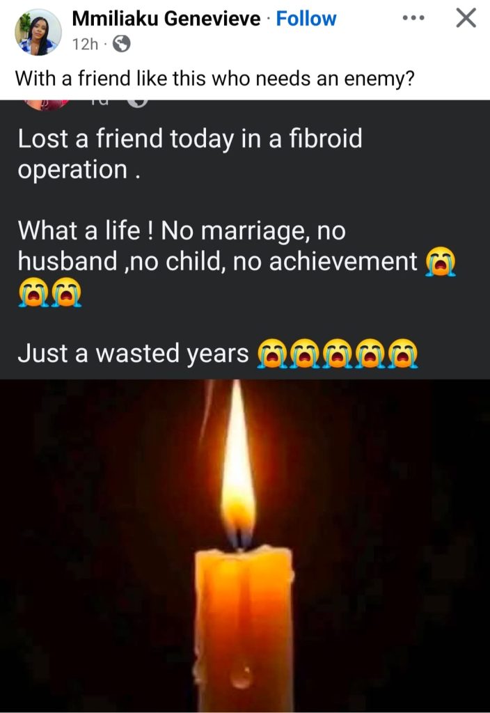 A woman has been told that she is an “enemy”, not a friend after she made a post on Facebook to announce the d£ath if someone she calls her friend.