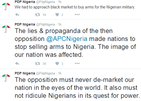 While commending the Nigerian Army for the rescue of one of the missing Chibok girls, Amina Nkeki, the opposition party, PDP, questioned what arms was used for the rescue. According to PDP, the rescue of the girl shows that while they were in power, they bought weapons for the military. See more of their tweets after the cut..