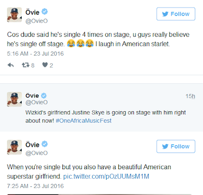 Skye was seen at th back stage with Wizkid during the One Africa Music Festival held in America – While on stage Wizkid declared four time that he is single
