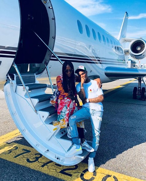 Nigerian star boy, Wizkid, and British model and actress, Naomi Campbell hopped on a private jet to Milan, Italy, yesterday for a show.