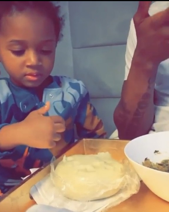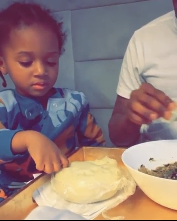Wizkid And His Son, Zion Eating Local Nigerian Food