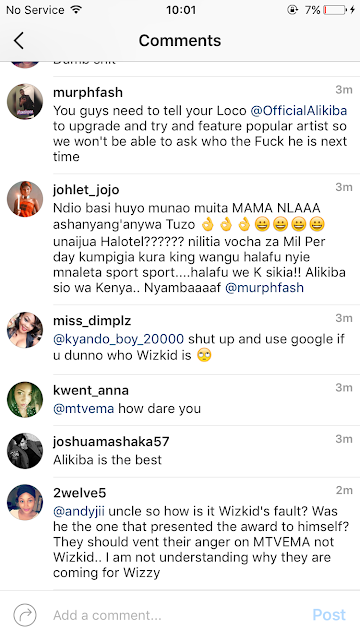 Tanzanians also took to social media to slam wizkid and crowned their own act alikiba as the best African act…..