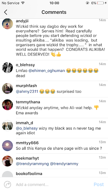 There’s serious battle on social media between Nigerians and Tanzanians after Wizkid’s award for best African act was collected back from him and given to Tanzanian act alikiba.