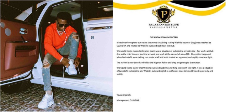 As against the initial report that linked Wizkid’s debt to the fight between the bouncer and the other staff, the club has released a statement to deny the report.
