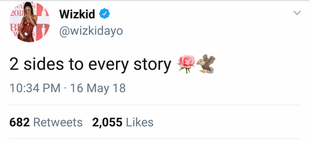 According to Wizkid,there are two sides to every story. He didn’t elaborate.