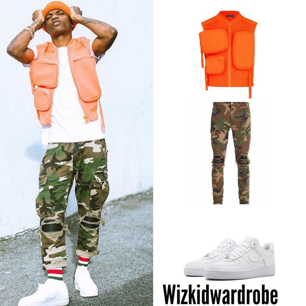 International Musician Wizkid shares adorable photos recently as he rock this expensive rubber Utility Gilet jacket worth 1million naira plus.
