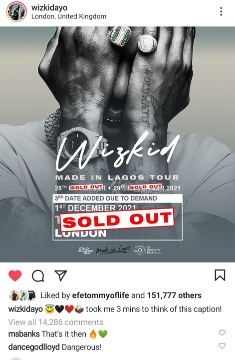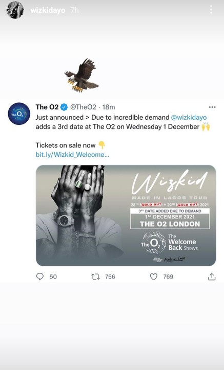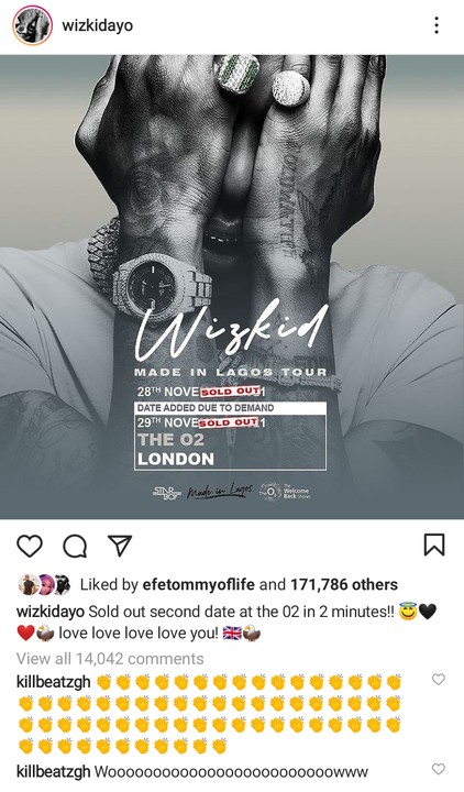 WizKid becomes the 1st African artist to sell out the O2 in minutes. He will also be the first African artiste to have multiple dates (3) at London’s O2 arena.