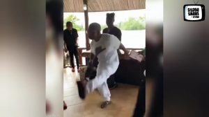 The 2 artistes and their friends celebrated him with a song being his birthday and challenged him to Gbese which he was able to do despite his age.