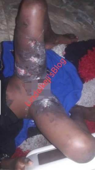 The lady popularly called mummy Onyi who leaves at Iyana Ishashi, Lagos poured the hot water on the little girl’s private part and kept her inside her house for days, attempting to treat the wound and cover up her evil act.