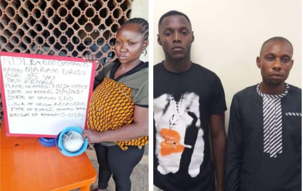“In a most audacious move, a nursing mother, 35-year-old Mariam Drissu was arrested at the Edo state Command headquarters of the Agency on Thursday 21st October while trying to smuggle drugs into the cell for a suspect in custody. Officers on duty had while searching the food brought by Mariam for her relation in custody discovered two cups of “Loud” cannabis weighing 13grams buried inside the food (akpu) meant for the suspect in custody.” the statement read.