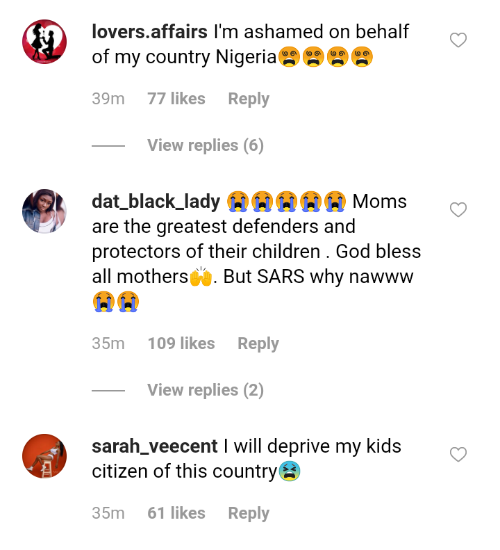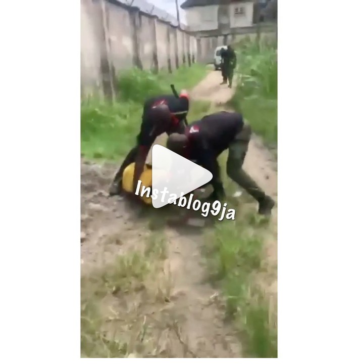 Mother assaulted for trying to stop SARS operatives from going away with her son for no reason, today, in Orhuwhorun, Delta State…