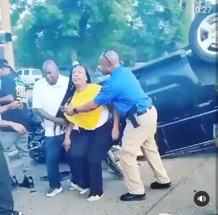 The woman’s car somersaulted but she came out unscathed with the help of cops and other people who were at the scene.