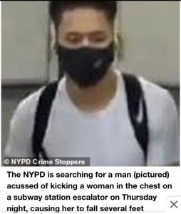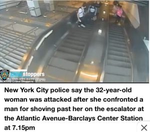 New York City police say the 32-year-old was attacked after she confronted a man for shoving past her on the escalator at the Atlantic Avenue-Barclays Center Station around 7.15pm on Thursday.