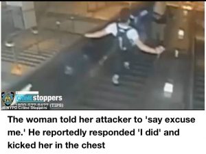 According to the Daily News, the woman told her attacker to ‘say excuse me.’