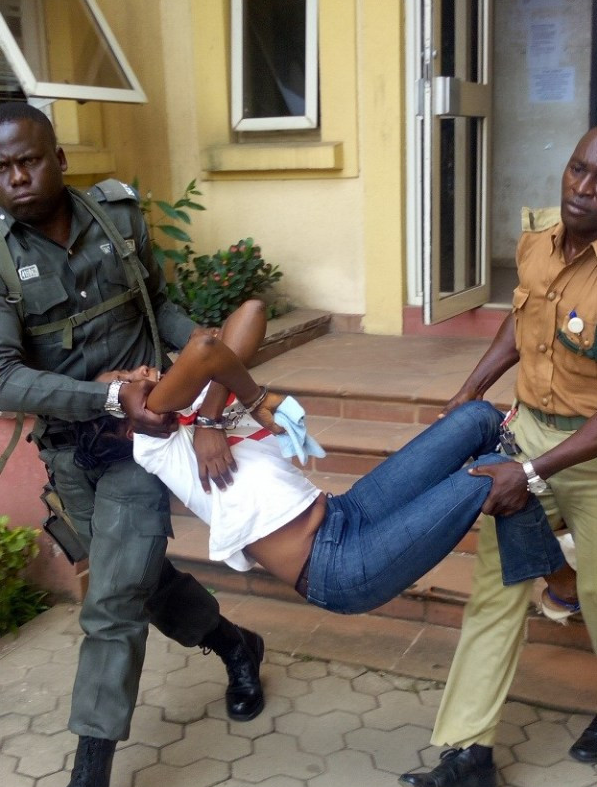 In her tears, she was led out of the courtroom and had to be carried by a mobile policeman and a prison warden out of the court complex to avoid disruption of proceedings in other courtrooms due to the commotion.