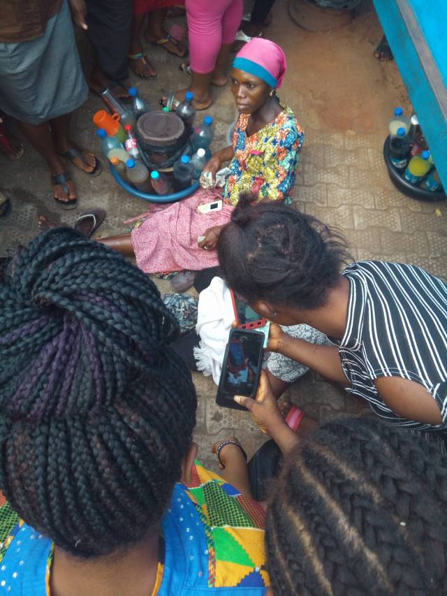 In the photos shared, the said lady can be seen surrounded by people looking at her and taking pictures, while she sits in front of the plaza with her herbs by her side.