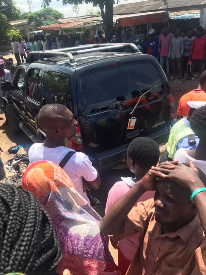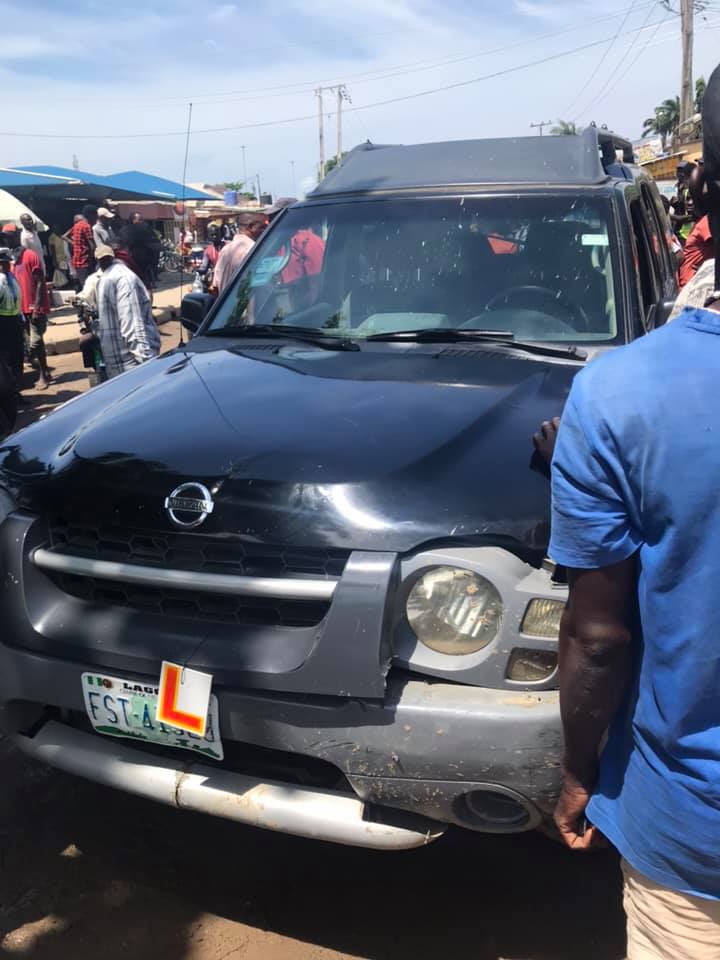 It was gathered before the driver of the Nissan SUV who had a ‘Learner’ tag attached to her car killed the Okada passenger, she knocked down two other road users in the area. While the Okada rider survived the incident though with bruises, his passenger who had his wares scattered at the scene of the incident died instantly. According to eyewitnesses, the woman who was learning how to drive alone fled almost immediately she realized she killed the Okada passenger.