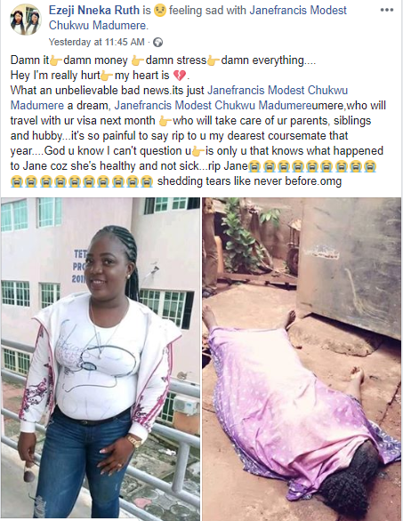Janefrancis Madumere from Mbano in Imo state was to leave Nigeria next month, before she met her untimely demise. She had already gotten her visa and was making preparations.
