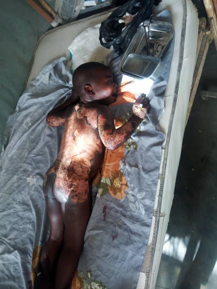 A little boy is battling with the injuries he sustained after his stepmother poured hot water on him in Numan town, Adawawa state.