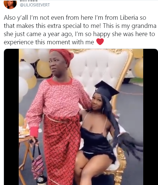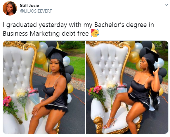 The Twitter user who just graduated with a Bachelor’s degree in Business Marketing shared photos and a video from her graduation ceremony.