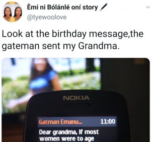 A Nigerian lady has shared the interesting message her grandma got from their gateman.