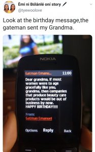 The Twitter user said the grandma got the message from their gateman who wished her well on her birthday.