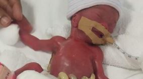 The baby’s mother gave birth to her by emergency C-section four months ahead of schedule after she was diagnosed with pre-eclampsia.