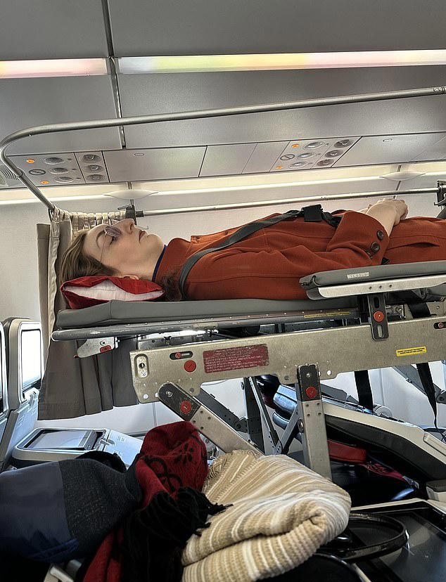 She must also arrive four hours before her flight to meet with medical staff and pay for the space the stretcher takes up, which is typically six seats.