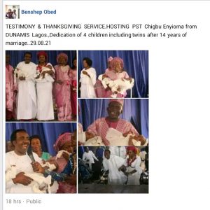 The resident pastor of DIGC, Idu-Karmo, Benshep Obed shared photos from the dedication and thanksgiving service.