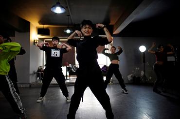 Dancing behind him in zebra print and pink streetwear are his students, snapping their fingers and flicking their hair toward a cameraman filming a promotional video.