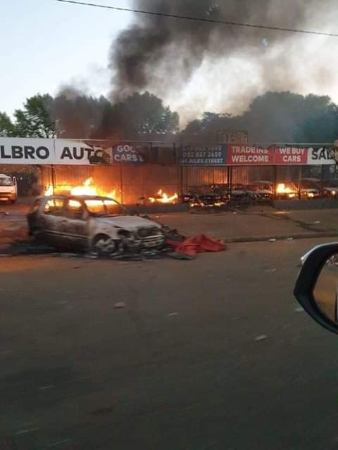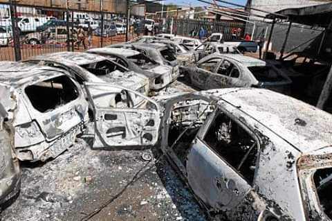 Two car dealerships in Kaal and Jules streets were among those damaged, and over 50 cars were burnt at night.