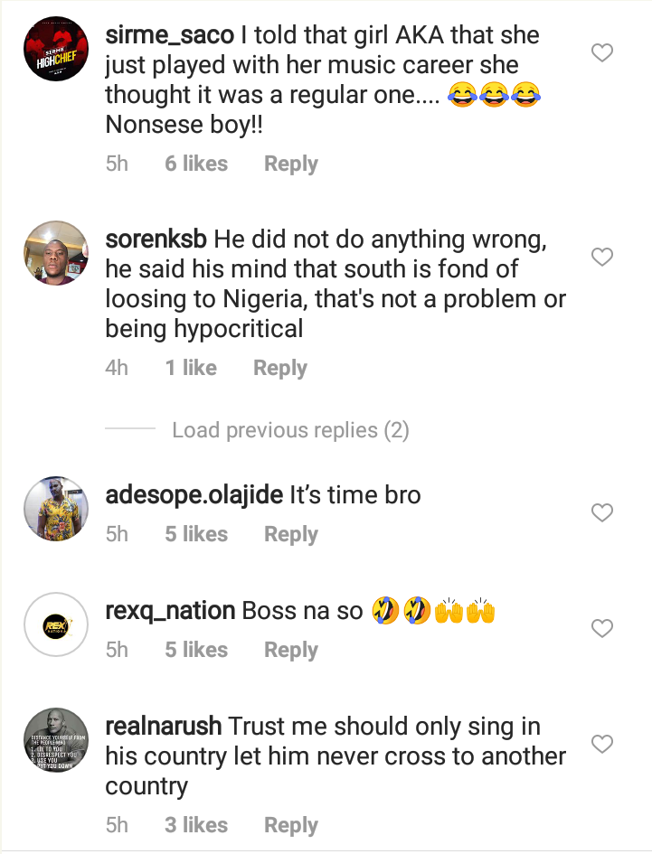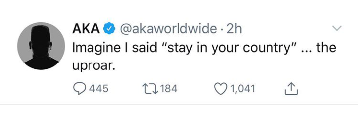 This is coming after AKA’s picture showing himself draped in the Nigerian flag with a mural of Afrobeat legend, Fela Kuti.