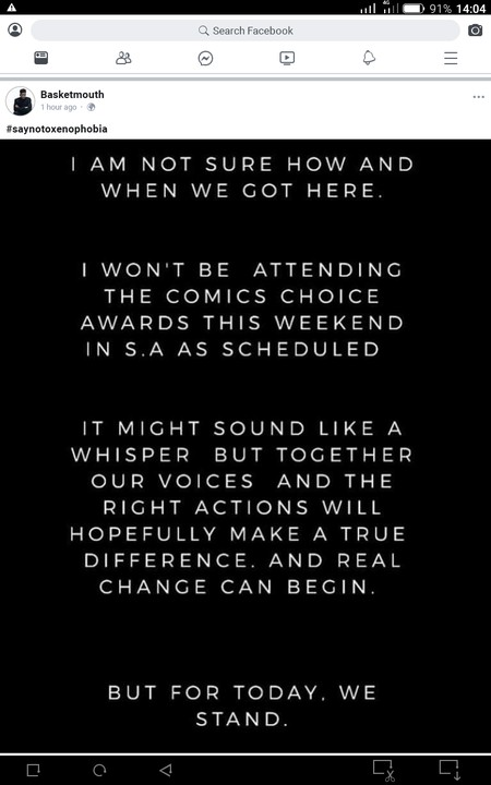 Xenophobic: Basketmouth Suspends Comic Award In SA