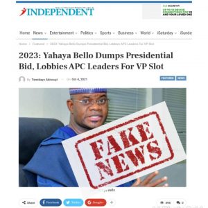 The publication by a national newspaper alleging that the governor of Kogi State, Alhaji Yahaya Bello, has backed out of presidential bid has been debunked and described as a “fear-driven” outing by the opponents of the governor.