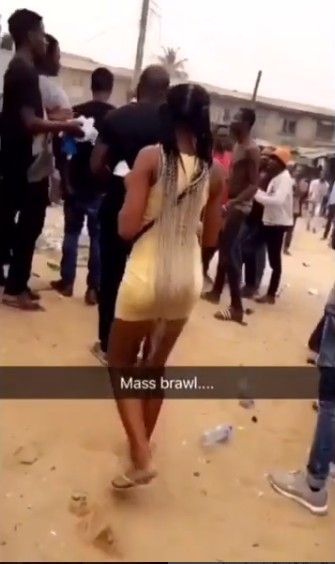 An alleged yahoo boy (fraudster) identified as Jeff Egbadon, reportedly took on one of his former friends, Zion, in a dirty fight in Idi oro, Mushin area of Lagos.